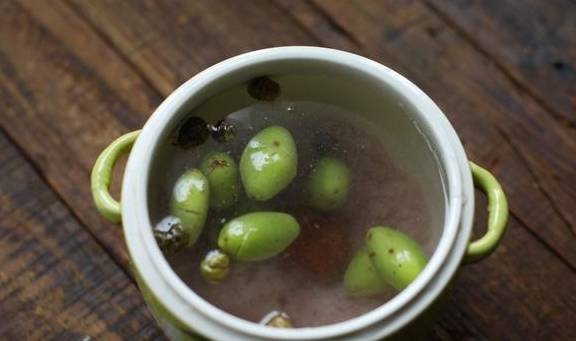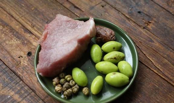 食材:新鲜青橄榄6-8颗,干石斛15克,蜜枣1颗,瘦肉200颗,盐2克,清水600-800毫升(适合2-3人份)。