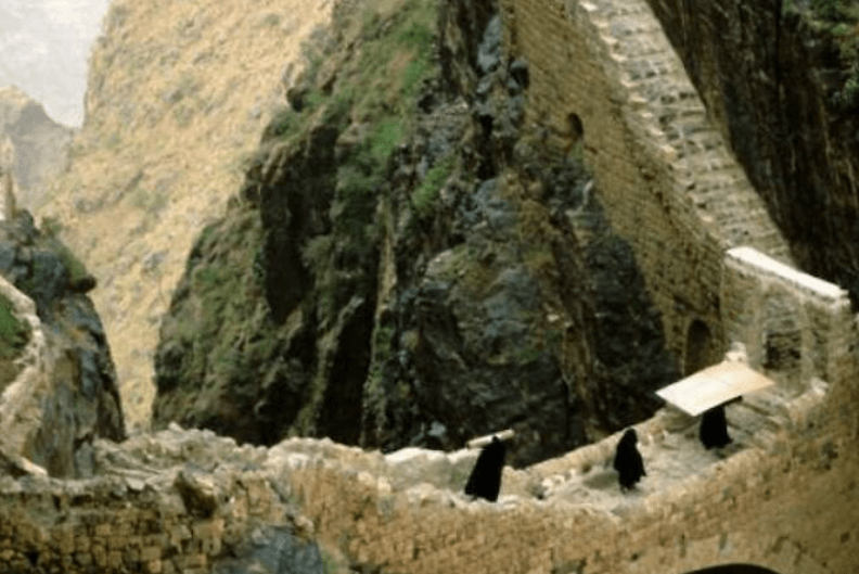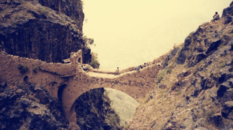 它叫沙哈拉之桥,还有个名字叫叹息桥,主要就是在也门的阿姆兰省——贾巴尔·沙哈拉的山脉上,这个桥到地面大概有91米的距离,光从上面往下面看就很恐慌了,我相信胆子小点的人肯定不敢通过。