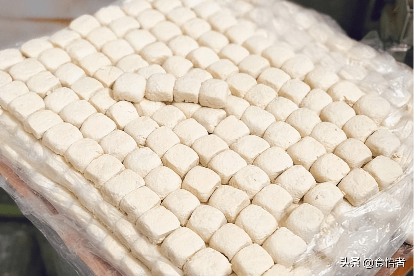 建水豆腐的气质不同于普通豆腐,原因是直接用豆腐原汁发酵而成的酸浆制作而成。建水豆腐制作工艺较为复杂,选用的是大而圆的白皮黄豆,取西门大板井的甘甜井水。经过10多道工序,细细加工,其独特的包制方法,也是我们豆腐制作中的绝技。将滚热的豆腐块排列在板子上,盖上木板、压上几块老砖,把豆腐中残留的水分压出来,豆腐定形后,从纱布中取出,再撒上盐,之后放置晾干,隔日翻动一次,待水分除去六七成,经过三四天的自然发酵,豆腐便做成。