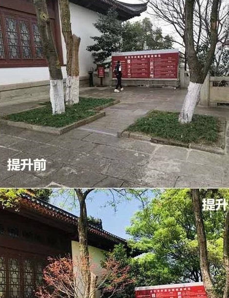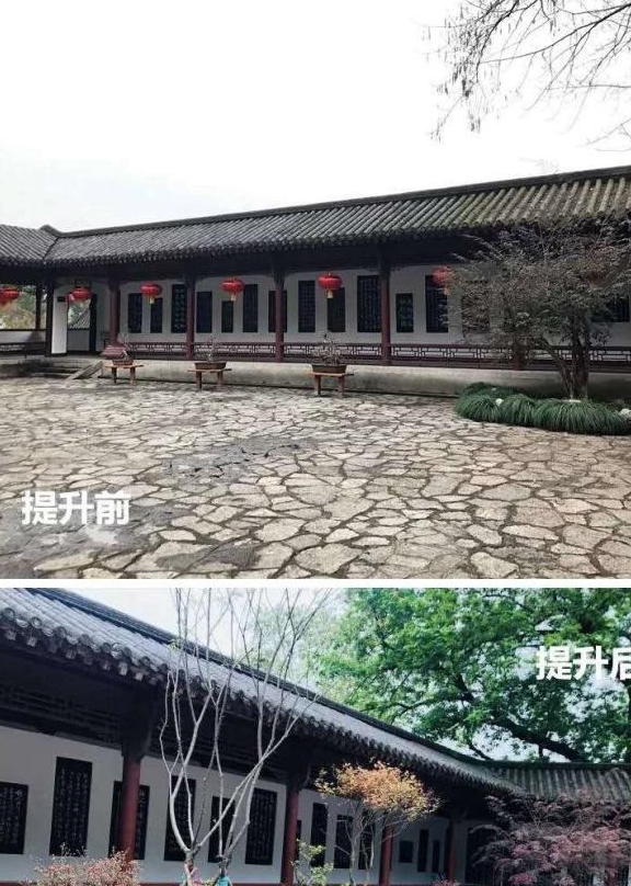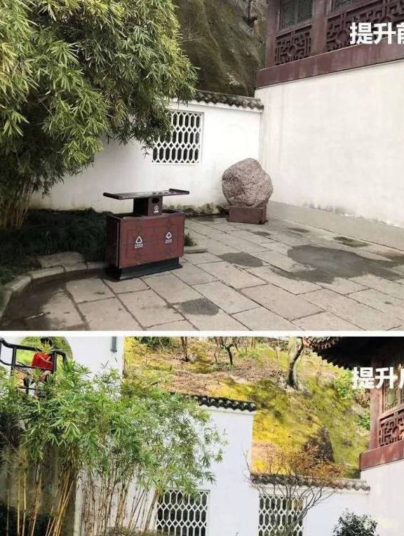 值得注意的是,在园区最不起眼的地方,垃圾桶被移走了,而从地面到整个墙壁和树木进行了重新布局,与背后山体的颜色进行了协调润色,从而突显江南园林的别样风情