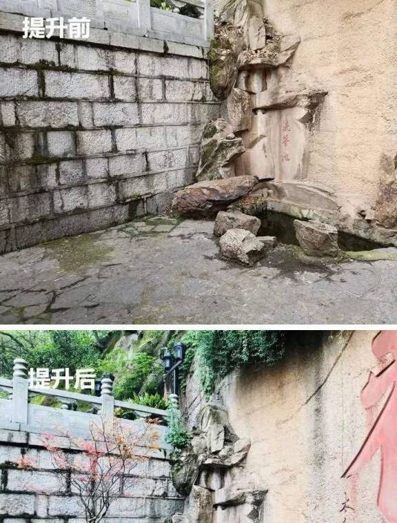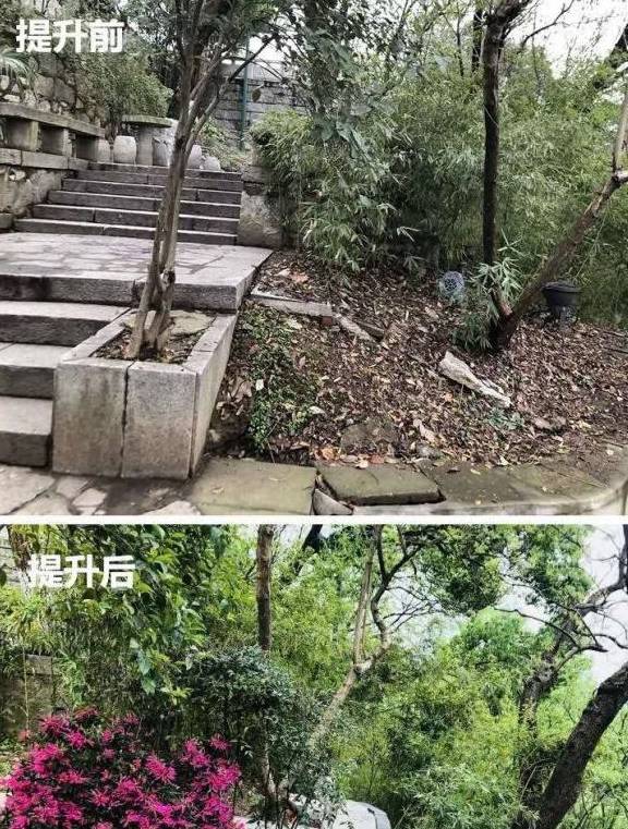 园林再造,即把原来显得比较单一的景观石进行了花卉栽培,让这一景色显得更加丰富,在去年的时候,这一角落还没有更多的被人关注,提升以后游客们都会驻足观看,增添了一份新的活力