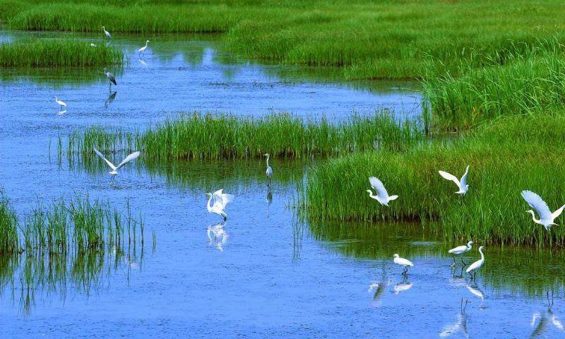 洪泽湖湿地其实资源很丰富,整个景区的占地面积超过5平方公里,还有75万亩的湿地一望无际。洪泽湖内出产丰富美味的水产,在当地非常有名气。在原生态建设的招牌下,洪泽湖湿地也种植了许多花卉,因而一年四季都有不同的景色。