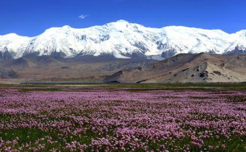 除了高山美景外,塔县还有一座绝美的杏花村。每年春天,杏花村中国的上千亩杏花竞相开放,和洁白的雪山相互映衬,简直美不胜收。