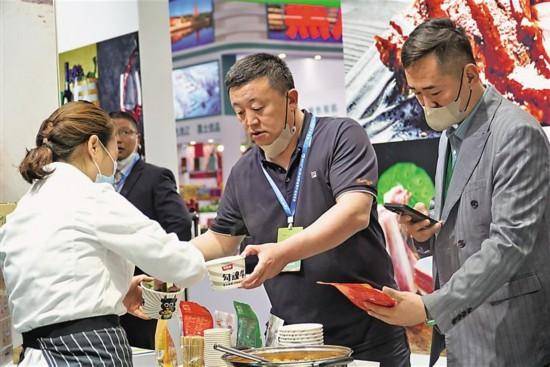 今年3月,在广东省佛山市顺德区举办的首届中国国际(佛山)预制菜产业大会暨2023广东(佛山)预制菜产业博览会上,宁夏展馆的滩羊、牛肉类预制菜品吸引客商和当地市民品尝、下单。 记者 王瑞 摄