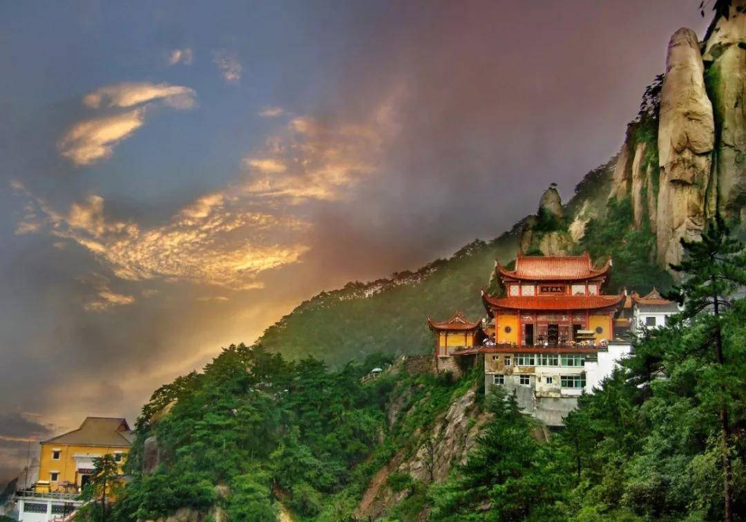 有不少九华山寺庙,都修建在九华山的山巅。比如百岁宫。这座寺庙修建在插霄峰的最高处,海拔高度871米,这也是一处修建于明代的寺庙。远远望去,百岁宫就像是九华山上一座巍峨的城堡,充满了神圣和庄严。在百岁宫内,珍藏着明代无暇禅师的金身,是九华山的至宝之一。