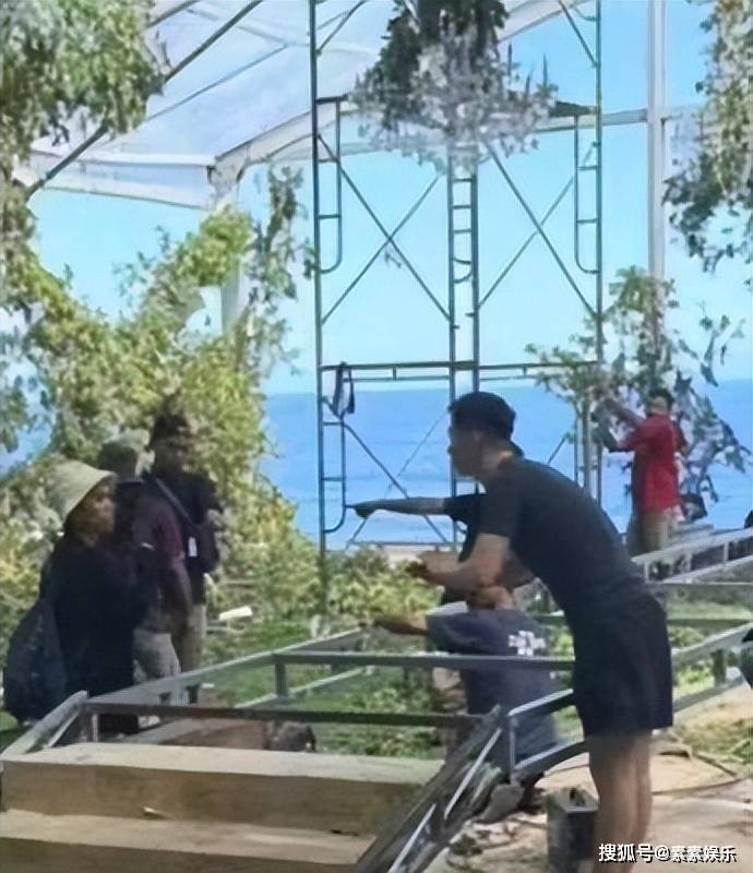 上图是窦骁亲自参与到婚礼的现场布置环节之中,并且与婚礼设计团队一起操作,精心为莲莲布置这一场婚礼。