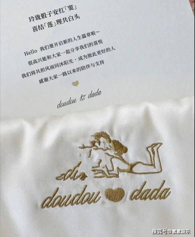 卡通亲吻照片上面写着:我们要开启新的人生篇章啦。感谢大家一路以来的陪伴与支持。