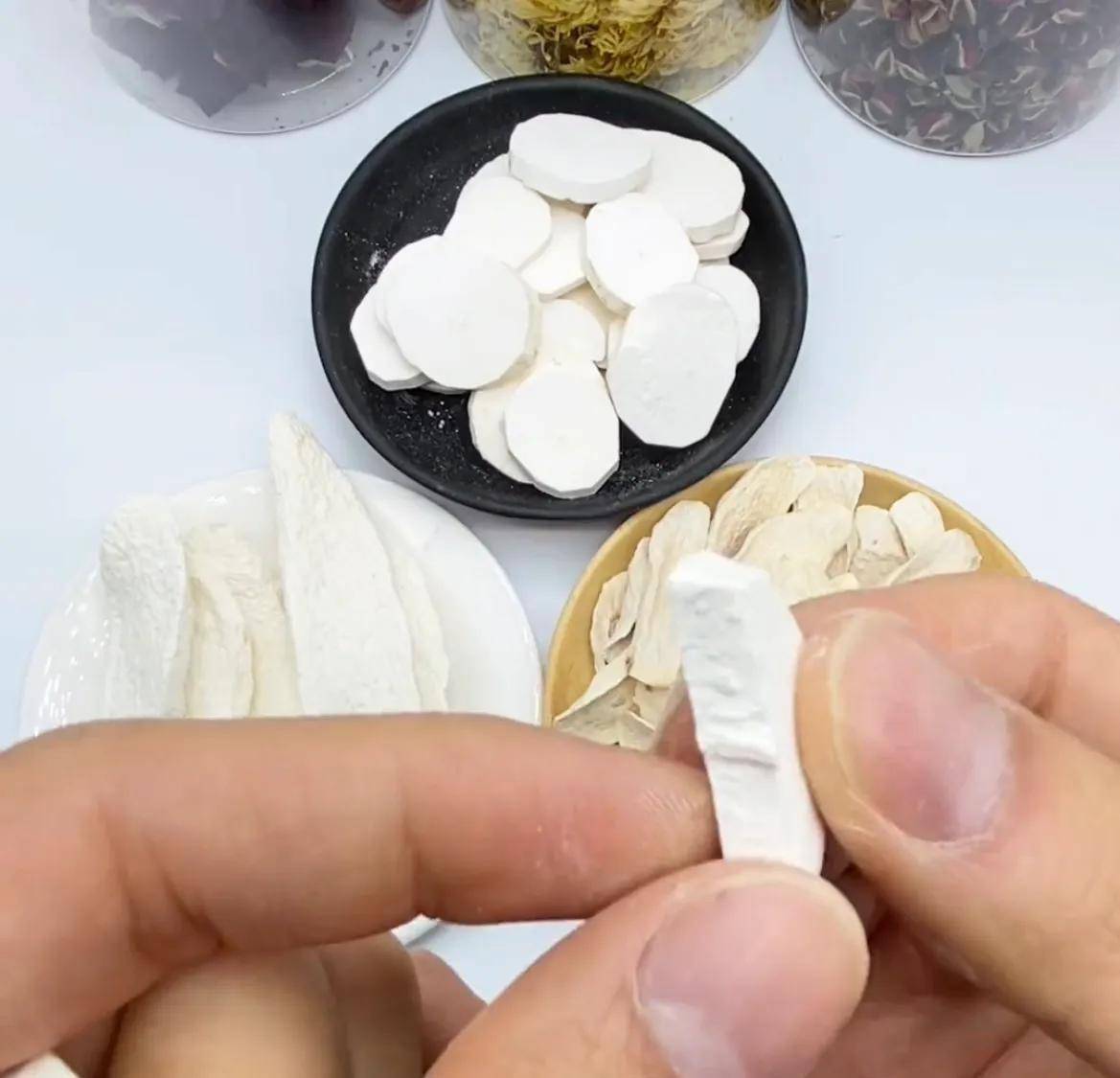 因为它是无硫的,闻起来有一股很浓的山药味这才是真正意义上的山药片。