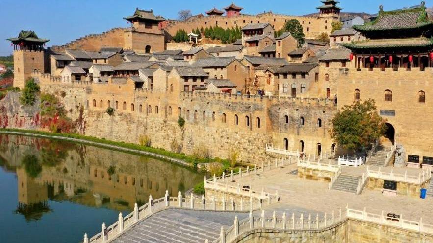 如今的湘峪古堡护城河环绕,中空的古城墙、全国罕见的“双插花院”等古建筑得到修缮加固,已成为国家4A级旅游景区。