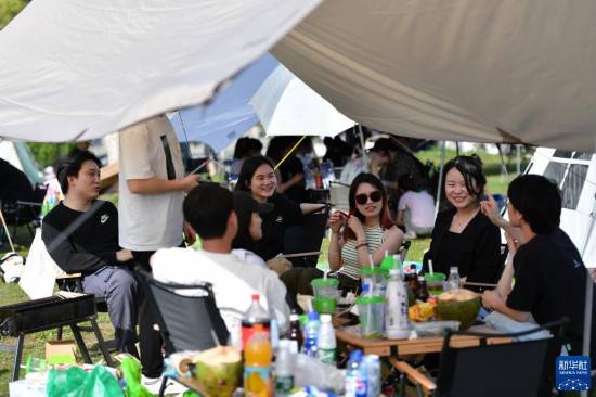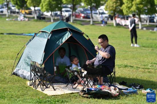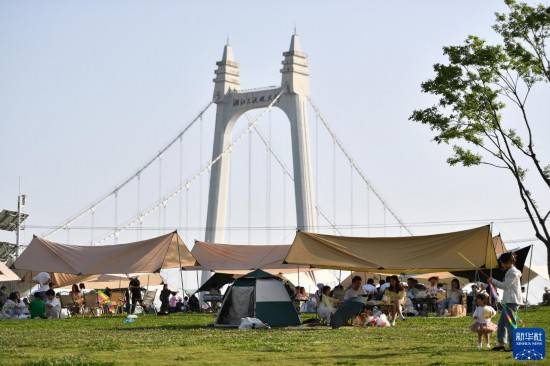 连日来,湖南省长沙市春光明媚、微风和煦,不少市民来到湘江畔露营休闲,乐享春光。