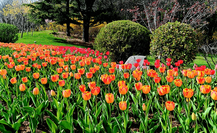 杏花、连翘、榆叶梅、玉兰、郁金香