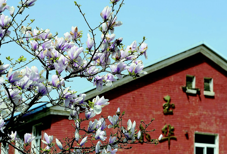 每年 4 月初,玉华小学的白色玉兰花率先开放,随后是粉色,紫玉兰则在 10 天之后压轴出场,形成三色玉兰齐开的盛景。