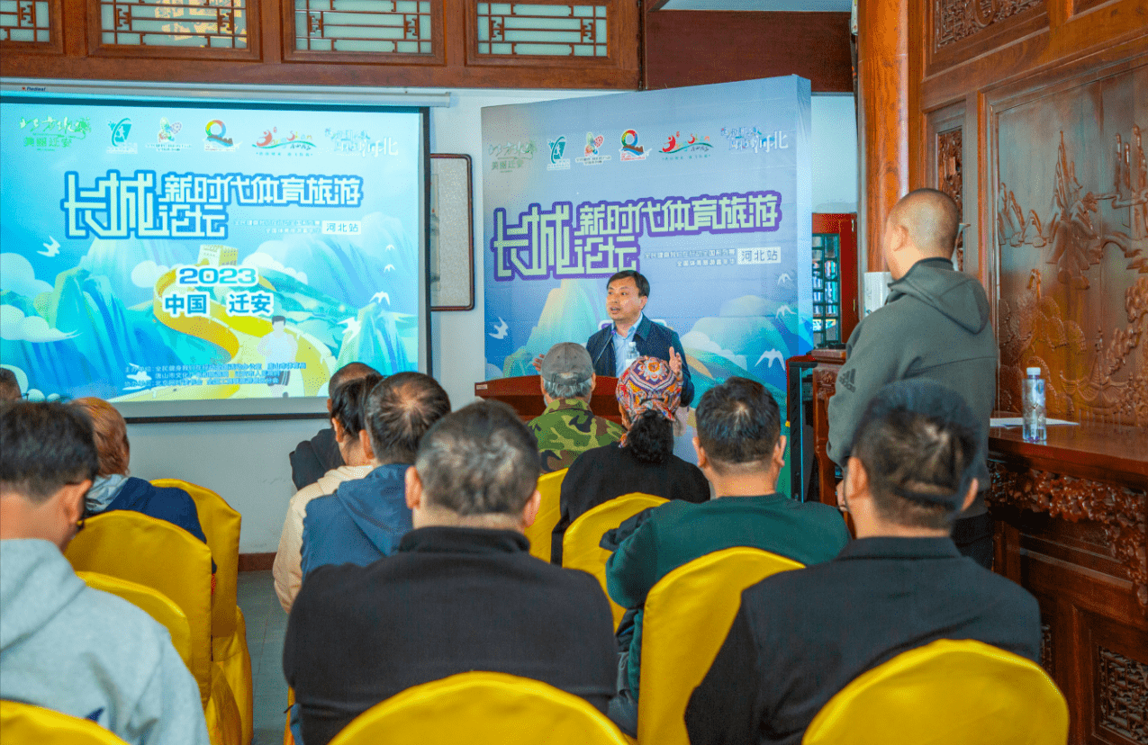 2023新时代体育旅游发展(长城)论坛在河北迁安大理石长城脚下的白羊峪守备署举行,邀请了来自北京、天津、迁安等地知名旅游企业代表、文化旅游行业专家、行业主管领导、奥运冠军参加论坛活动。三年疫情影响,我国各行业都受到不同程度的影响,特别是文旅产业造成巨大冲击,为激发市场活力、提振消费信心,2023年新时代体育旅游(长城)论坛以“疫情后的体育旅游产业再发力”为主题,进一步推动全民健身运动与城市品牌、旅游产业、乡村振兴等产业的融合发展,增强市民体质,提高市民幸福指数,宣传和推广迁安文化旅游产业发展,助力体旅产业高质量发展。活动由全民健身我们在行动全国活动办公室、全国工商联景区分会、迁安市人民政府主办,迁安市文化广电和旅游局主办。