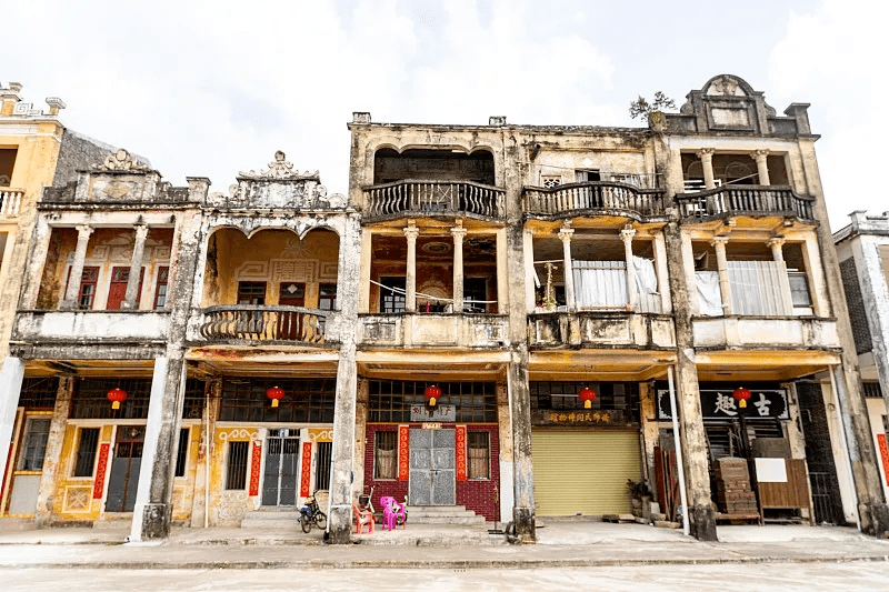 ◎ 600多座骑楼老道的赤坎华侨古镇:位于江门开平市中部潭江河畔,拥有370年开埠建墟历史,由上埠关氏、下埠司徒氏在古镇东西两端聚居逐步发展而成。