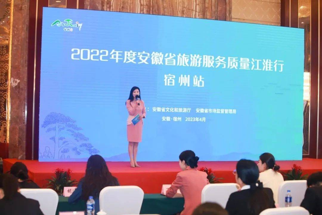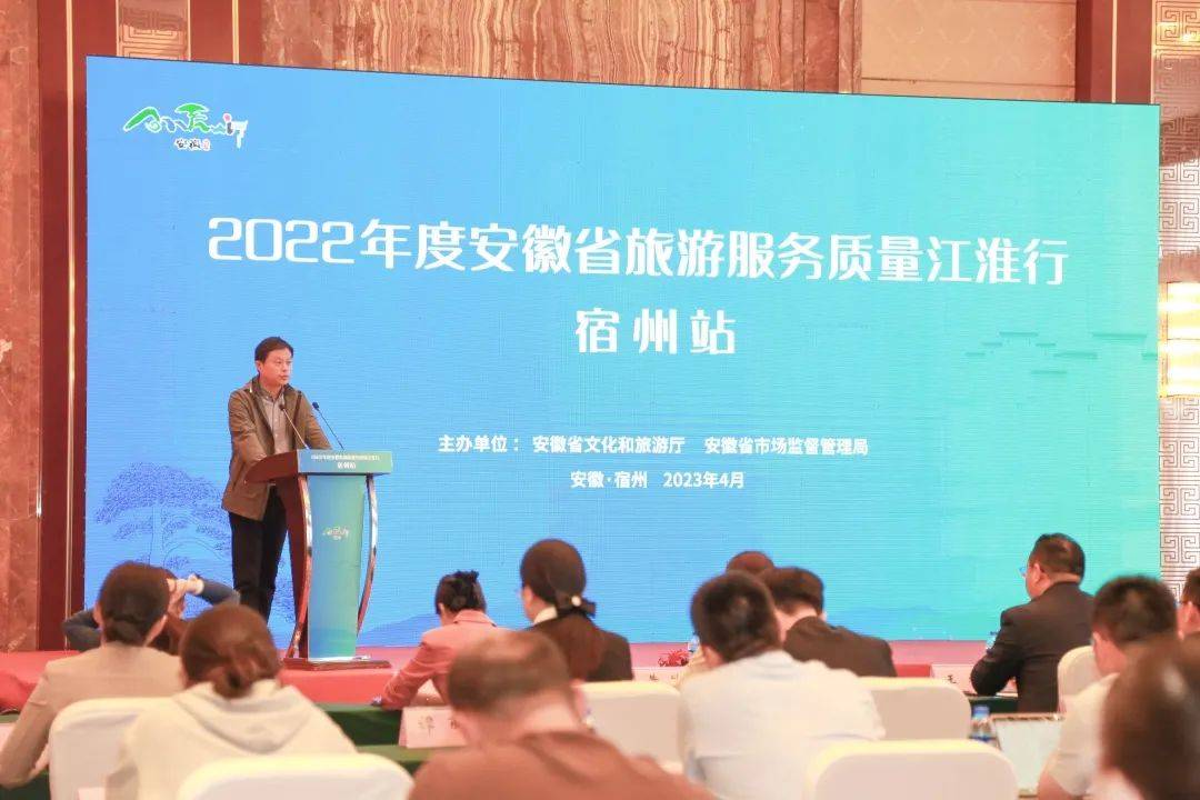 4月17日,由安徽省文化和旅游厅、省市场监督管理局联合主办的2022年度安徽省旅游服务质量江淮行宿州站活动在宿州国际大酒店举行。安徽省文化和旅游厅、宿州市文化和旅游局、宿州市市场监督管理局相关处室(科室)负责人,2022年度标杆单位质量宣讲员、质量故事演讲大赛获奖选手代表、安徽文旅质量体验官、宿州市文旅企事业代表以及部分媒体代表参加活动。
