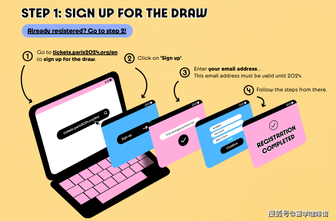 无论是报名抽签还是之后的直接购票,都需要在巴黎奥运会官网注册账号进行操作,注册具体流程如下:
