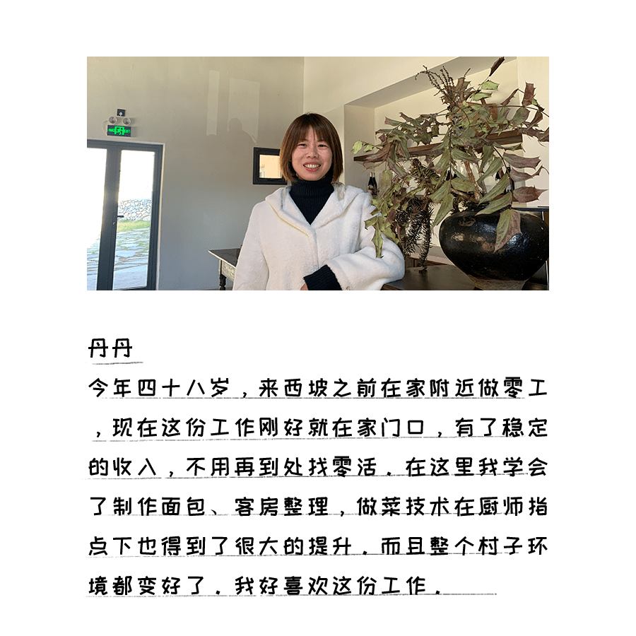 除了店长一一,其余的管家和阿姨们都是本地的居民。他们穿上了西坡的制服,学会了Housekeeping的意思,也学会了制作之前可能从未听说过的“司康”和“欧包”。
