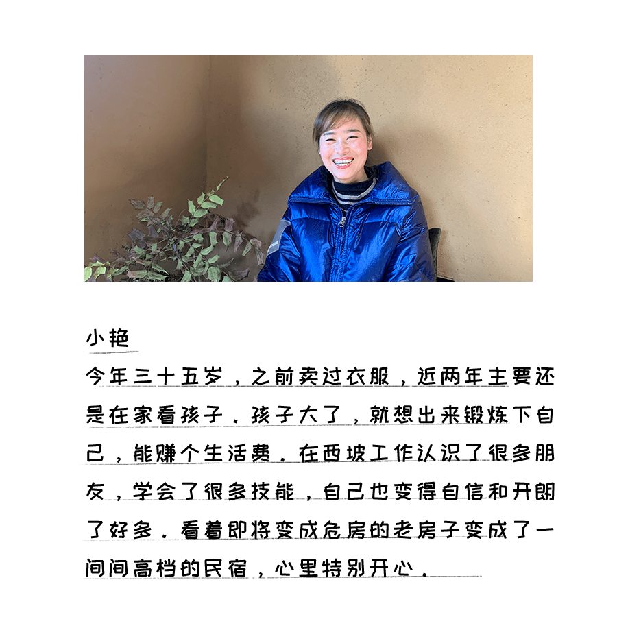 西坡来到这里,我们与村民之间,村民与客人之间,有了人与人之间真实的交流,情感的流动。新鲜的热闹与朝气,便也就这样发生了。这座位于东经约190度,北纬33度的中国村落,也将会被更多的人了解,或是,你也许也会,喜欢上这里。