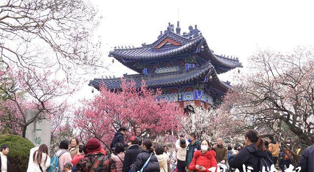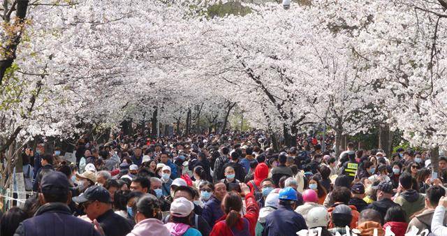 2月24日,梅花节期间,梅花山迎来了内地与港澳全面恢复通关后的南京首个入境旅游团,他们的第一站便直奔梅花而来。南京玄武湖景区也在樱花盛放时,迎来了截至目前今年客流量的峰值,“3月19日单日客流达到15.5万人次,正是樱花开得最好的时候。”南京玄武湖景区管理处办公室主任戎飞霞告诉现代快报记者,那个周末玄武湖景区对解放门采取了“只进不出”的限流措施。