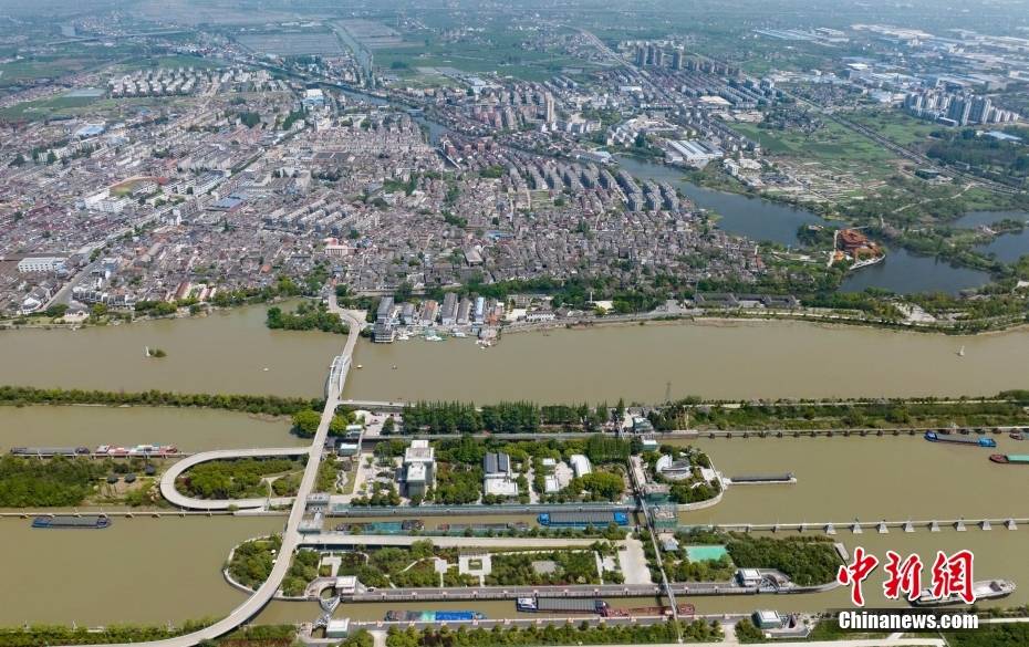 原标题:南船北马水陆联运 航拍京杭大运河畔千年古镇
