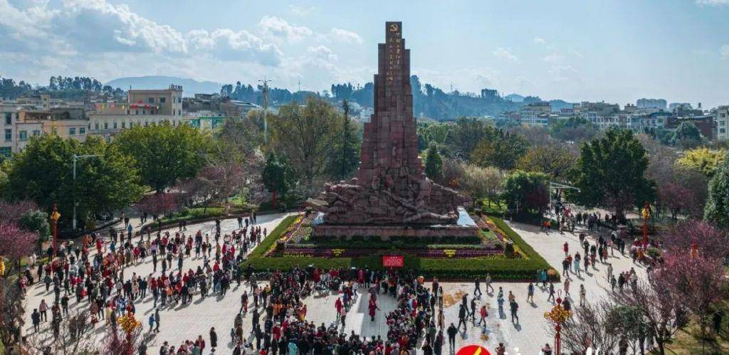 市民在红军长征过会理纪念碑前跳起欢快的舞蹈。叶长智 摄
