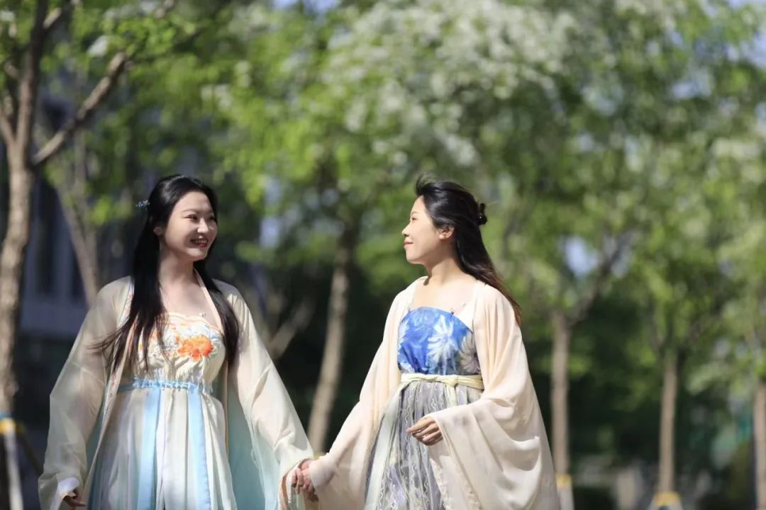 流苏花开,花期仅有一周左右。连日来,山东农业工程学院淄博校区的师生们,身着汉服在流苏树下流连忘返,拍照留念。