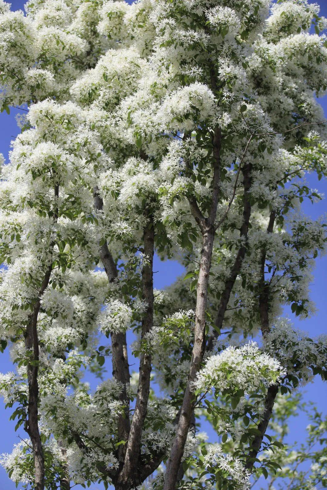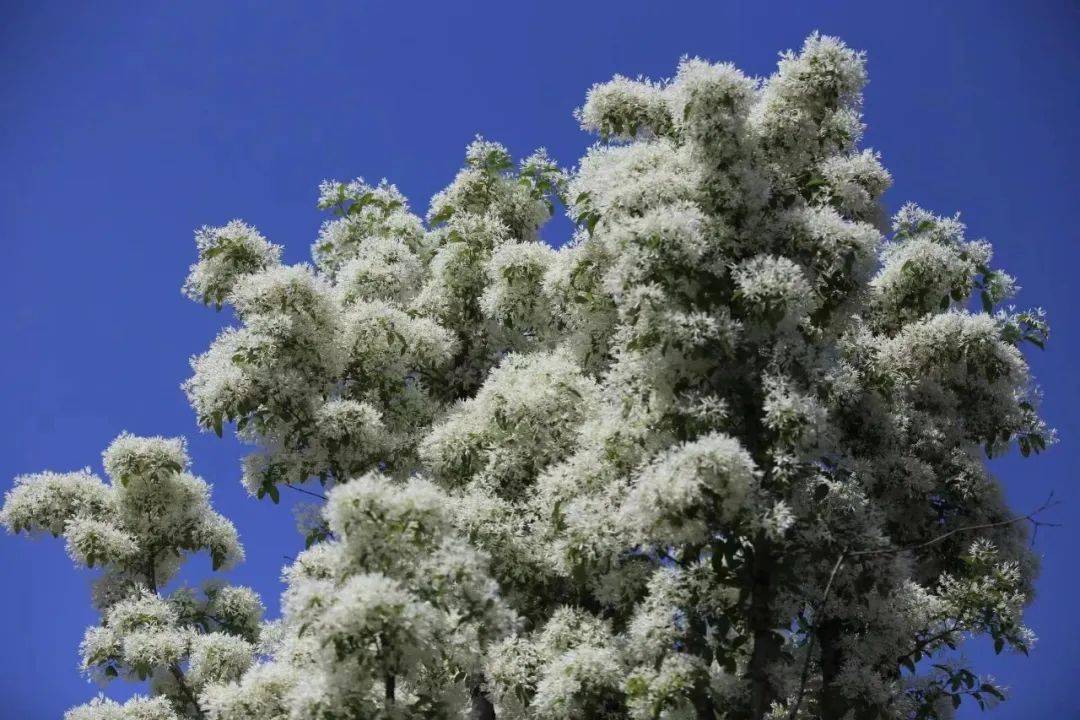 流苏花是国家二级保护植物,花朵洁白如雪,状似古代仕女服饰的流苏而得名。它在每年四月如期盛开,如盖霜雪,因此又名“四月雪”。