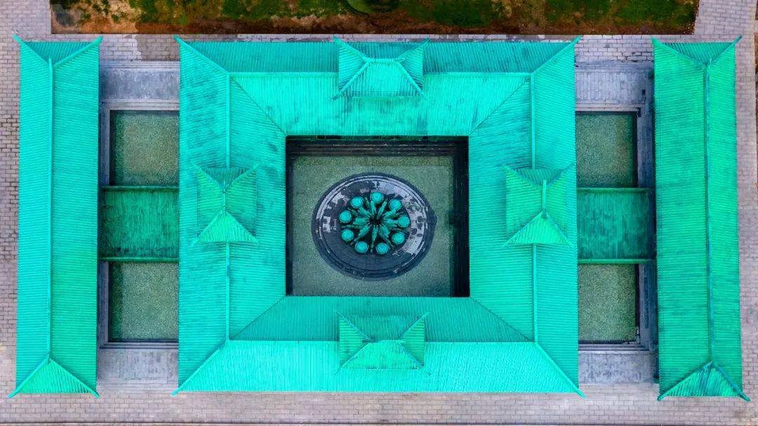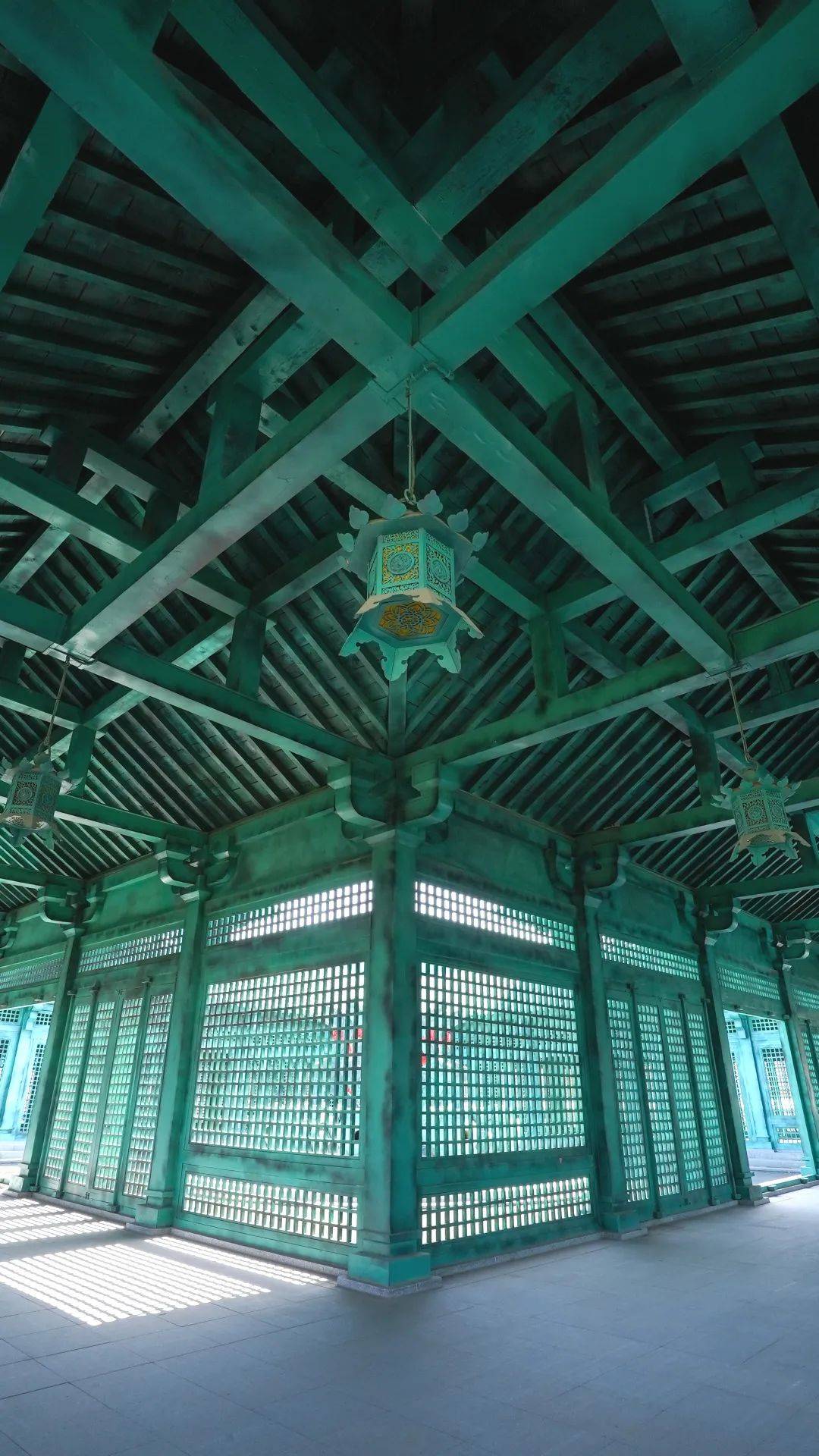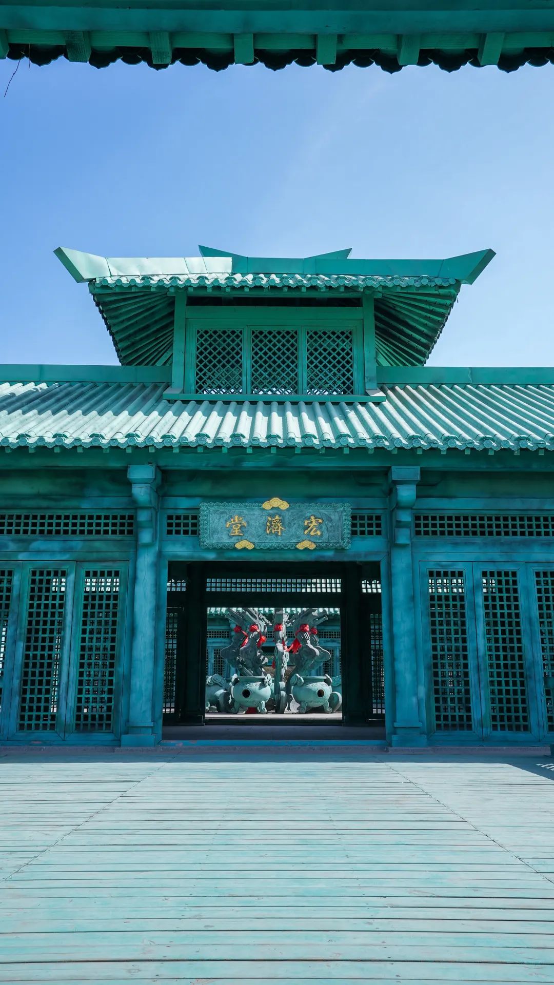 这座建筑在汉代建筑风格上大胆创作,整体为天圆地方的布局,穿过游廊可以到达药宫内部,古色古香的青绿色搭配着宏伟的复古建筑,彰显着神秘与大气,在这里,可以轻松感受传统与现代的碰撞。
