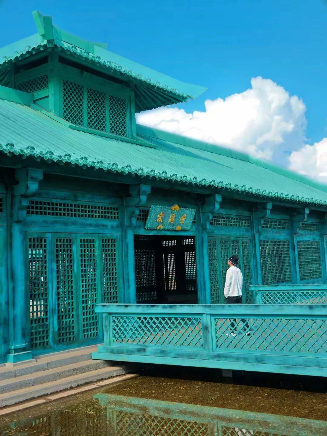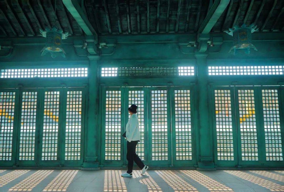 这里还是一个超级出片的地方,阳光透过青绿色的栅栏,形成一道道光影,站在光下,怎么拍都出片!