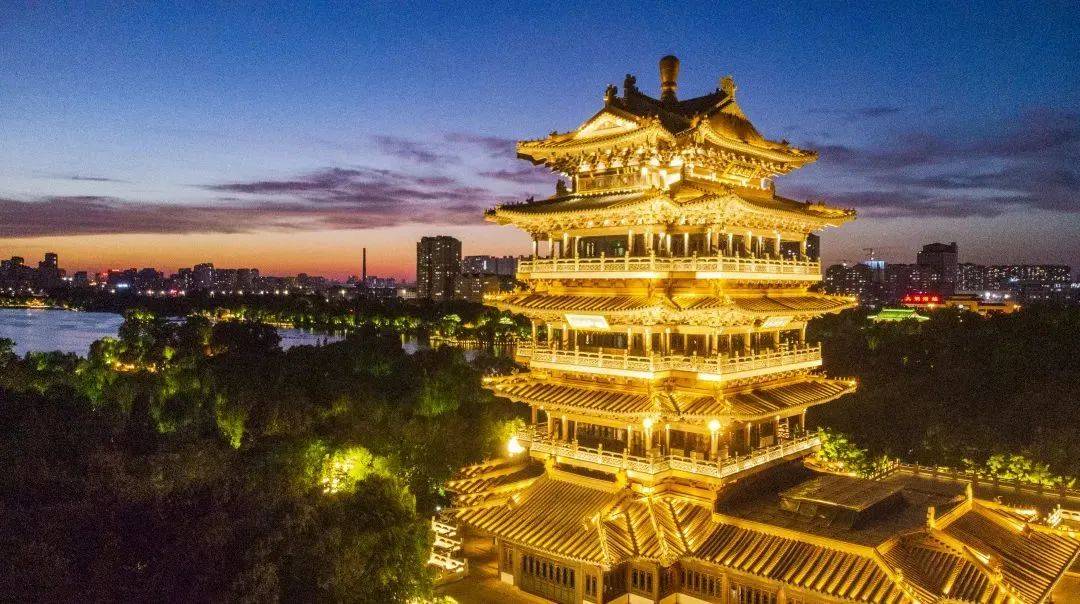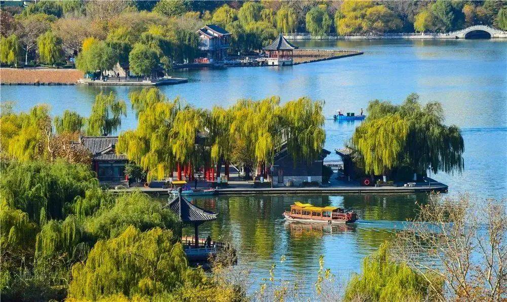 走过家家泉水、户户垂杨的曲水亭街,伴一路夕阳,不慌不忙;走过碧波荡漾的大明湖,看一眼华灯初上,灯光璀璨的超然楼。