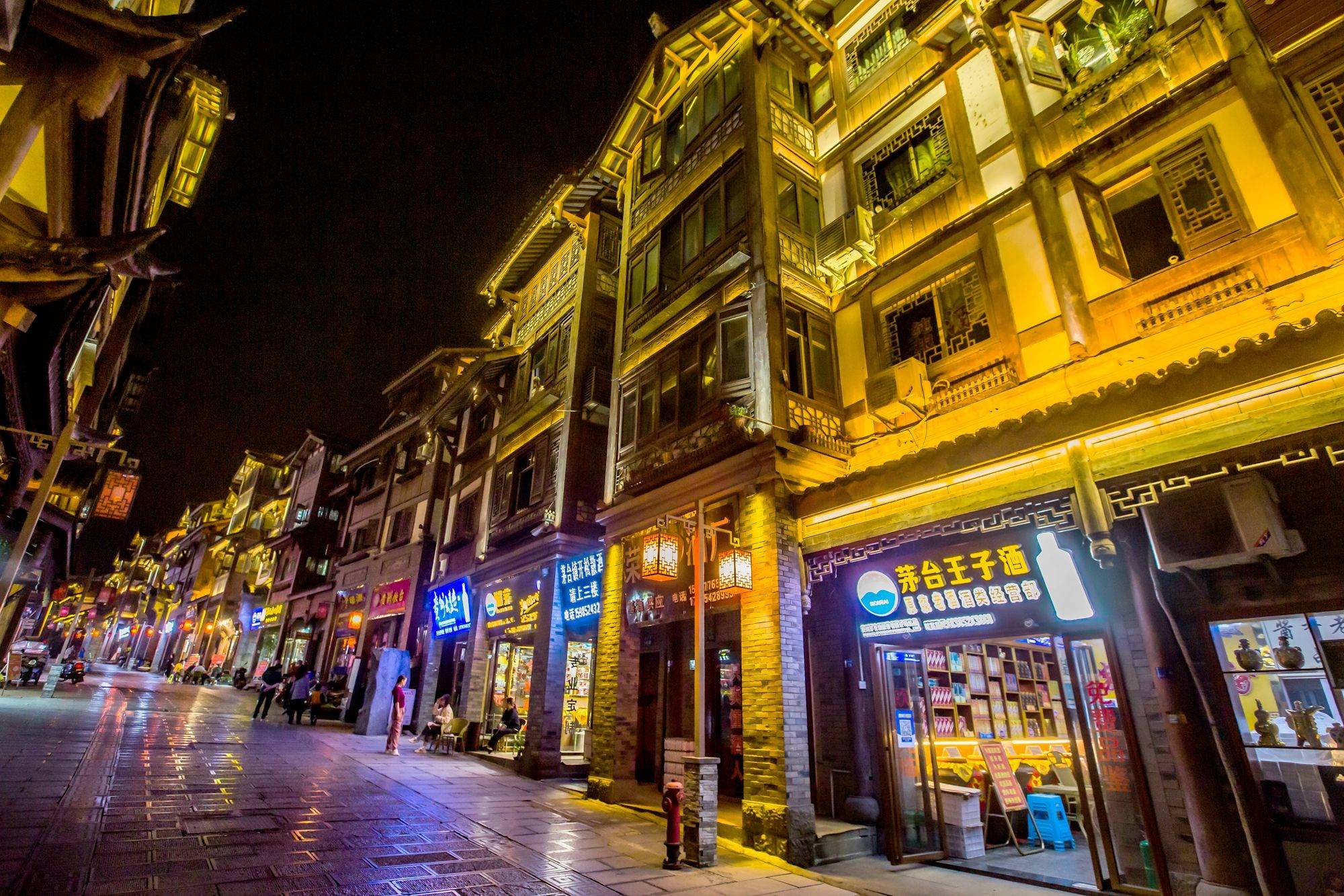 穿过高大的牌楼,走过青石砖路,空气中氤氲着酒香,古镇的韵味、美丽的夜景,真让人生出“酒不醉人人自醉”的惬意感。