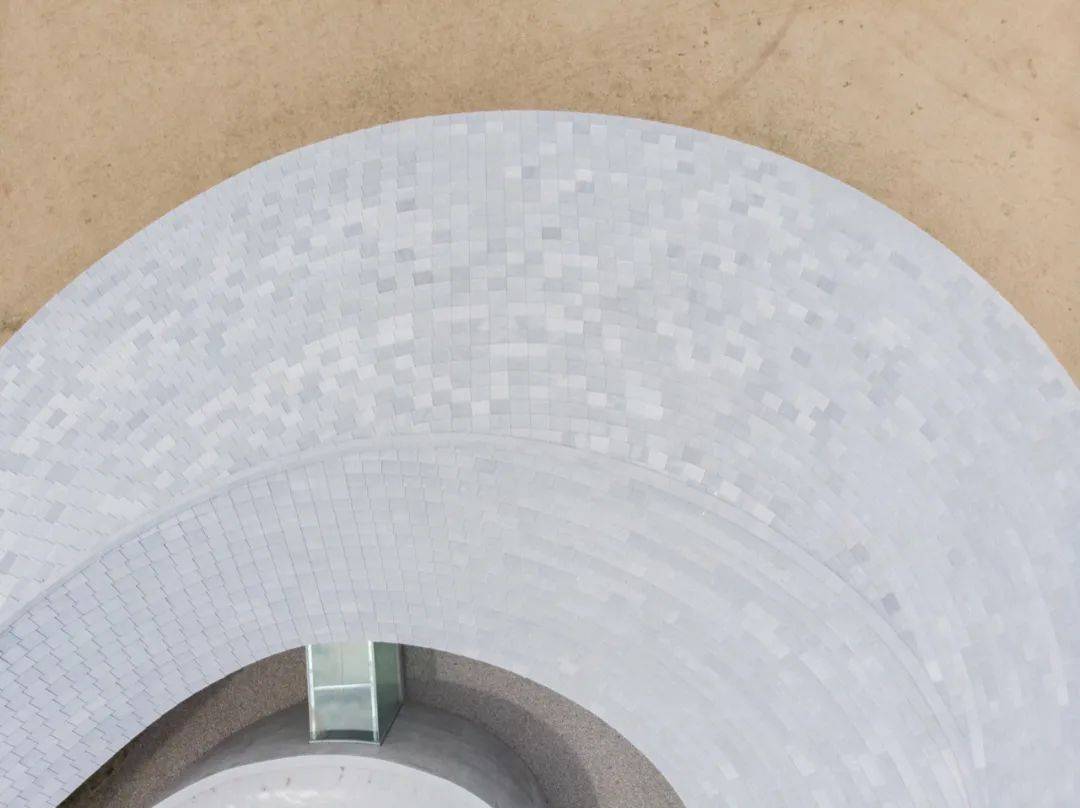 展馆的混凝土底座逐渐加宽,以连接和容纳其不同的功能,大厅和展览空间位于东角,北面是全景观景台。