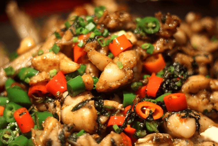 这一款真的是必点的牛蛙锅呀!如果只点一个锅,一定要点这个。紫苏叶是湖南的特产,紫苏是可以帮助牛蛙去腥的,用紫苏叶跟红绿辣椒再配上新鲜的牛蛙,一起用大火焖炒,真的让人止不住的流口水。这一口味的牛蛙,辣度适中,是绝大多数人都能够接受的辣味。