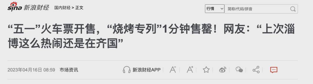 确定的是,当地文旅局亦与山东中铁文旅发展集团联合推出「烧烤专列」,包括高铁、火车、公交等交通方式,切实便利游客的交通出行,推动淄博文旅产业发展。同时,五一小长假肯定会迎来大量游客,如何确保旅游质量、游客安全、包括加强市场监管,这对当地政府的城市运营是一次大考。