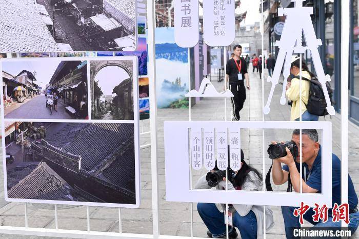 摄影爱好者现场拍摄照片。
