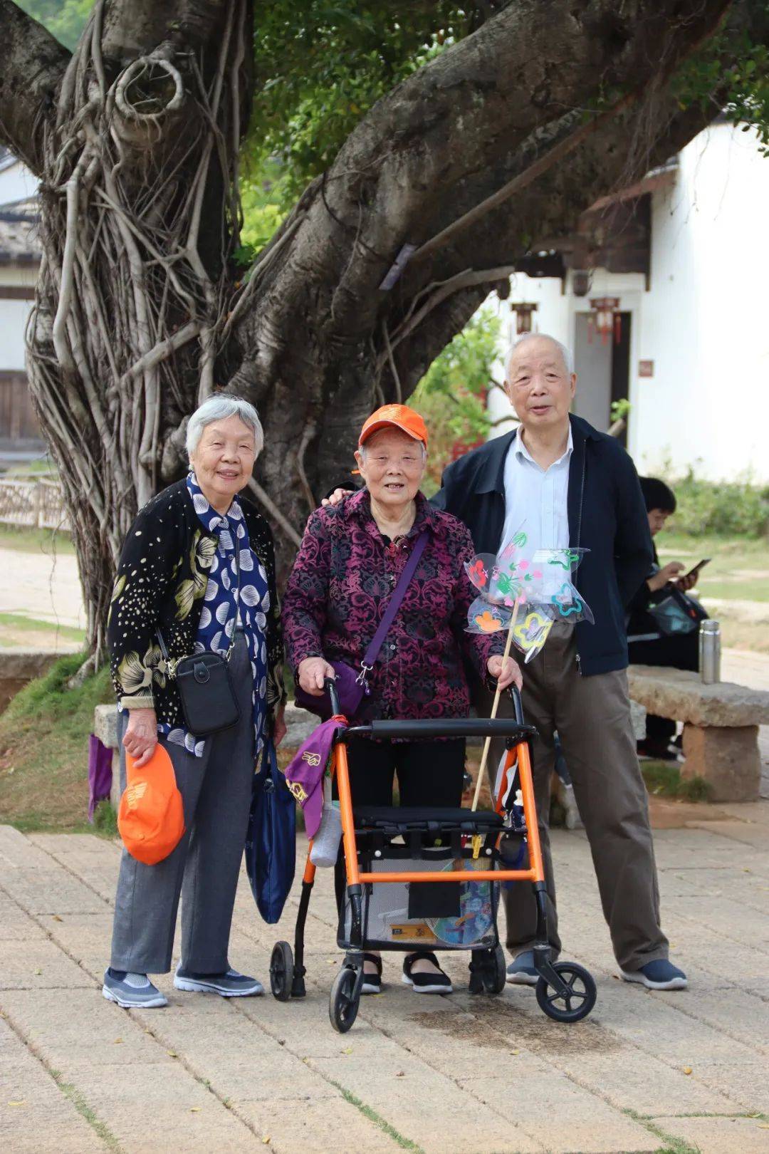 温柔的暖风吹过。长者们在启程前做的涂鸦风车刚好派上用场。色彩鲜明的风车随风转动着,为此次春游增添了更加生动的元素。福州万颐春游小分队的四十多个人相伴而行,欢声笑语充斥着古街,在古街上也成了一道别致的风景线。