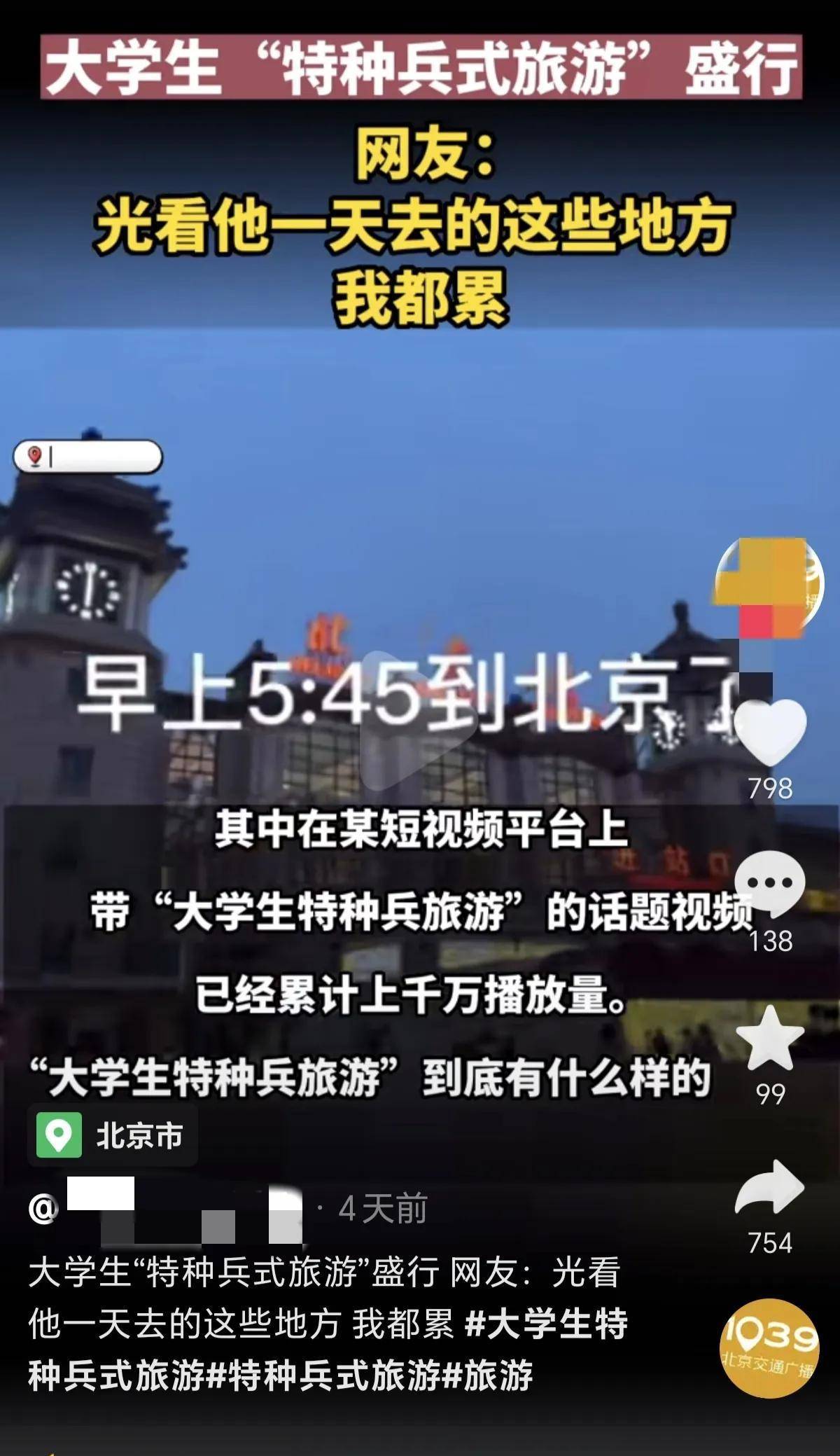 跟淄博烧烤"的走红一样,"特种兵式旅游是大学生们打下的新的江山一,他们把旅游变成了一场"野营拉练。周末双休,他们48小时急行军,密集打卡热门景点。