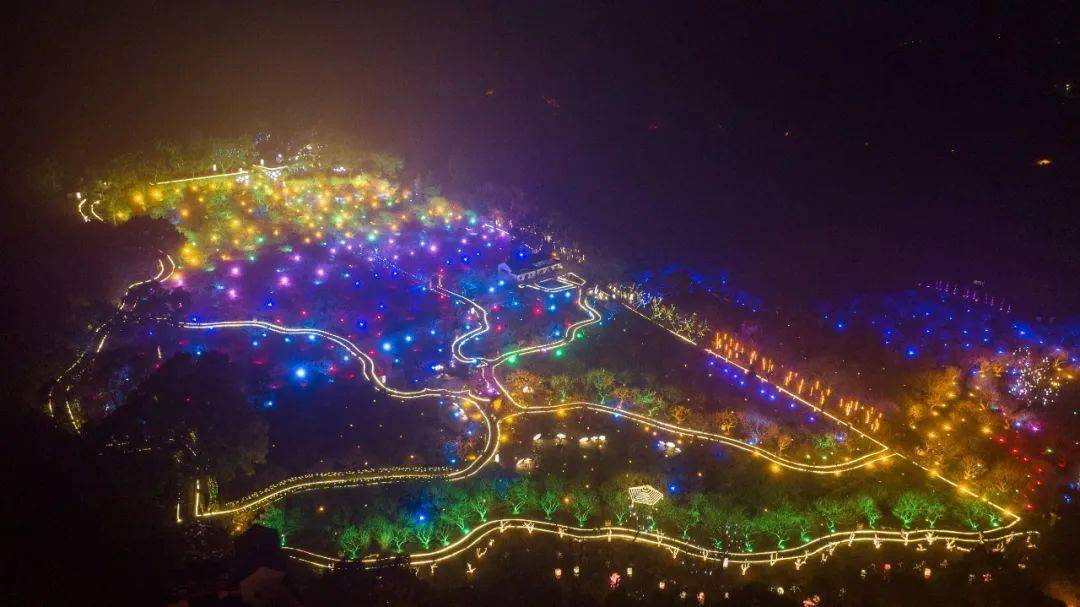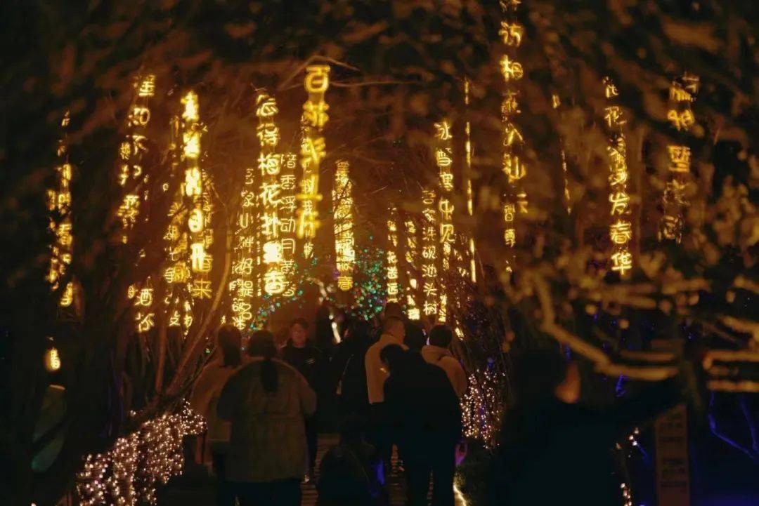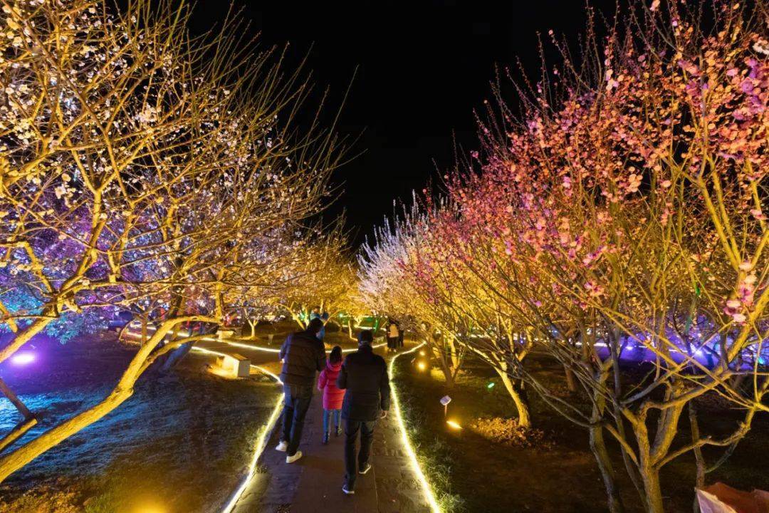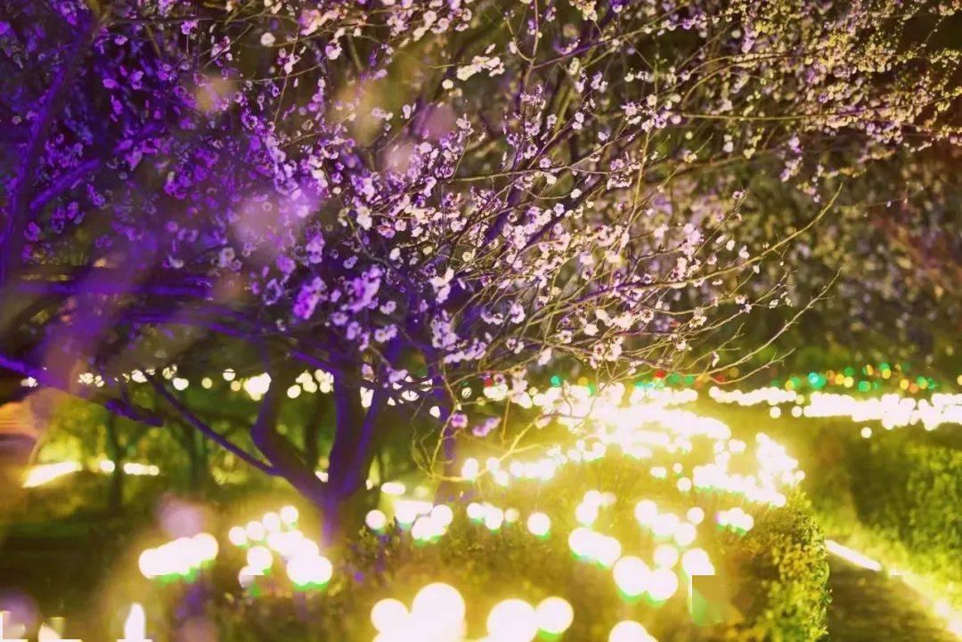 便在香雪海的夜景里流光溢彩