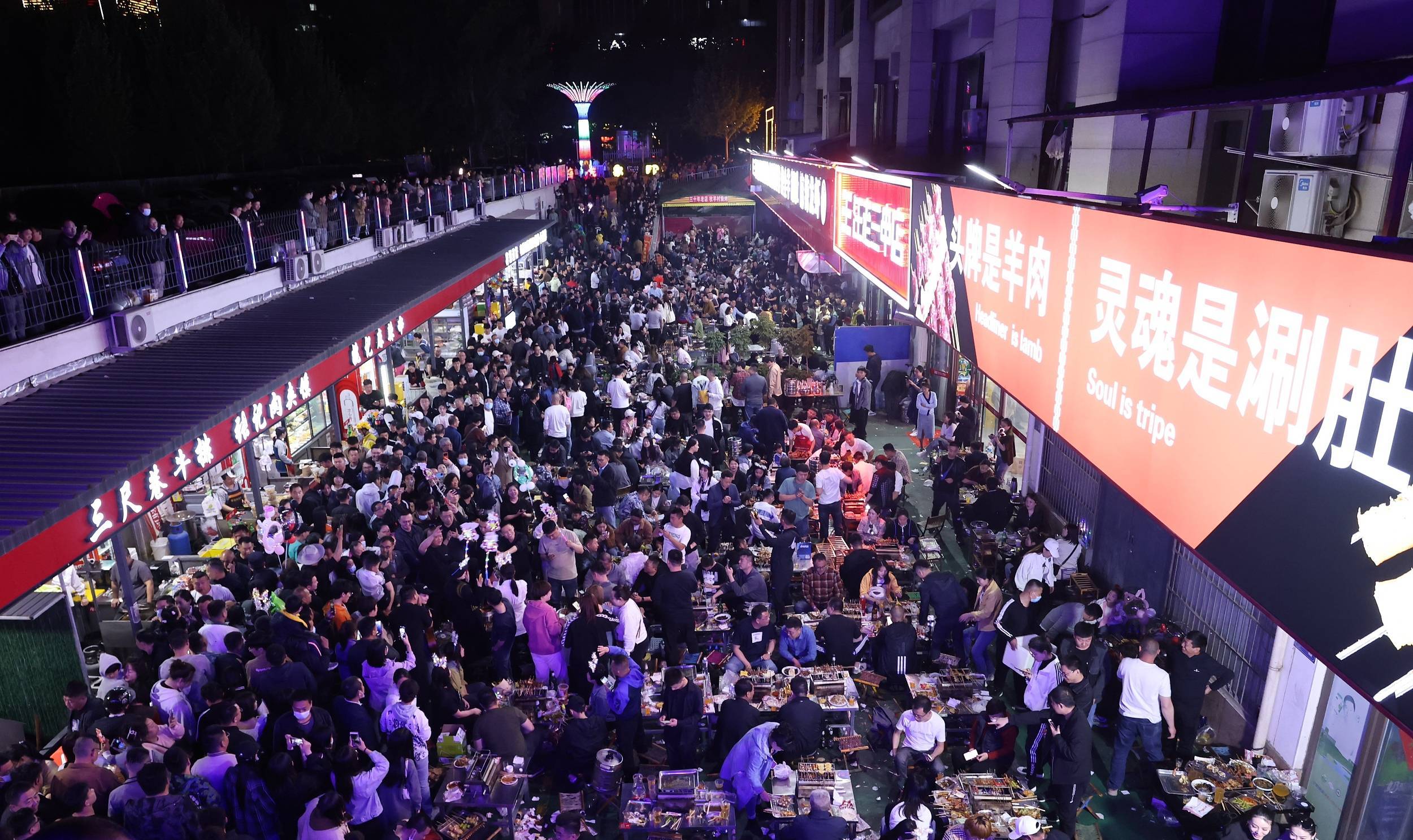 2023年4月16日,山东淄博,烧烤店生意火爆。 视觉中国 图