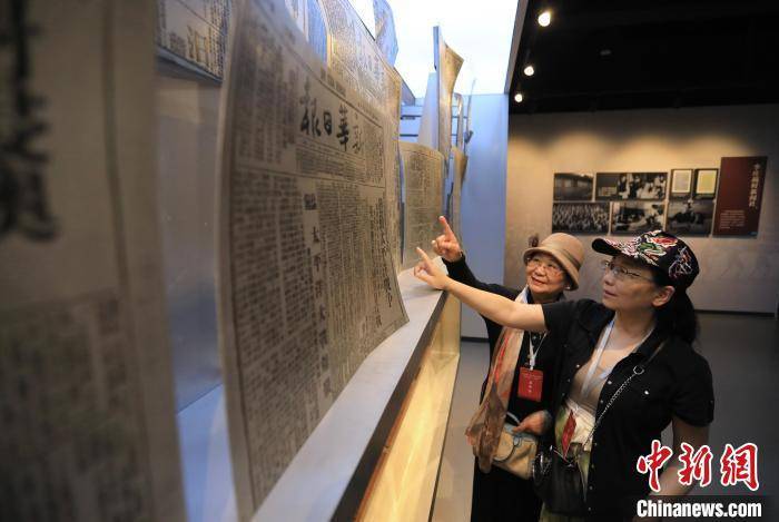华文媒体代表作品观看展出的历史图片。 王磊 摄