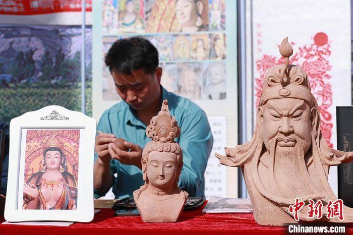 图为在第五届黄河风情文化旅游节活动现场,泥塑艺人展示技艺。 陈坤 摄