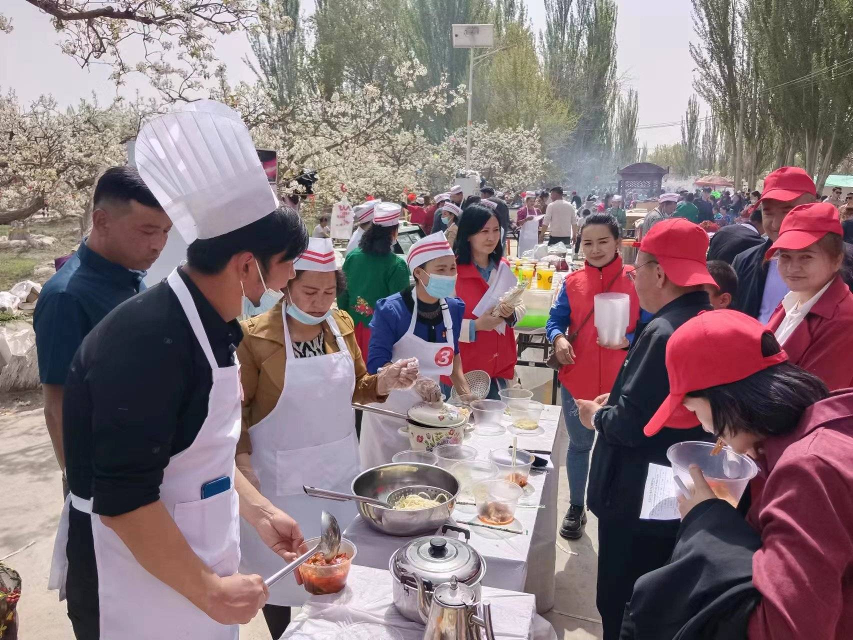 哈尔巴克乡阔什吐格曼村村民如则·阿卜拉每年的杏花节、梨花节都会到现场摆摊,卖烧烤、抓饭等生意,一个梨花节下来,他可以增加3000多元的收入,在家门口就能挣到钱,一家人十分高兴。