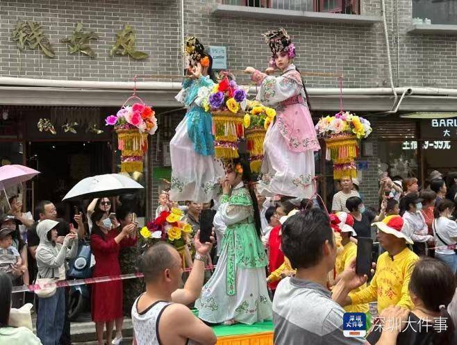 此次参与飘色表演的是吴川梅岭飘色艺术团,他们今年是第七次参加西乡北帝“三月三”庙会,“感觉此处庙会比以往更隆重、更热闹,文化氛围更加浓厚。西乡北帝“三月三”庙会,尽显粤港澳大湾区文化魅力。”吴川梅岭飘色艺术团副团长欧亚成告诉记者。