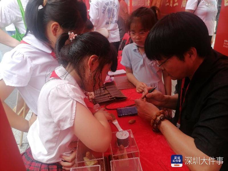 “明有奇巧人曰王叔远,能以径寸之木,为宫室、器皿、人物,以至鸟兽、木石,罔不因势象形,各具情态……”如今,《核舟记》中王叔远的绝技,就传到了宝安核雕手艺人胡堂山手中。在《谢氏核雕》非遗项目代表性传承人胡堂山的非遗文化摊位前,大大小小的核雕作品有序陈列着,令人目不暇接。扎根宝安20年,胡堂山亲历、见证、参与了这座城区的变化。在胡堂山看来,广府文化、客家文化、潮汕文化等民俗文化在这里交织和融合、传承与发展,逐渐形成了自己独具特色的民俗文化。肥沃的传统文化土壤滋润了他的创作灵感,小小橄榄仁,在他的刻刀下,变成了令人垂涎欲滴的黄田荔枝,变成了客家围屋,变成了深圳机场。“创作应该重点抓住能反映当代现实的题材,结合时尚流行元素,不断创造出有新意的作品,我们民族文化、传统手艺就丢不了。”胡堂山对非遗文化的传承有自己的一番见解。