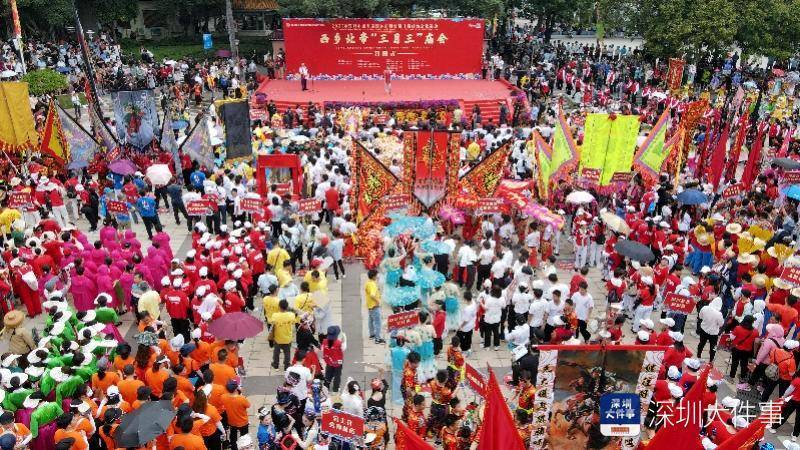 当百年老街的青砖地面,走进一群非物质文化遗产的传承者,当规模庞大的特色古文化建筑群里,重现手艺人最原生态的民俗技艺,这是一种怎样的天造地设?4月17日,西乡街道省级非遗传统文化活动——西乡北帝“三月三”庙会在人们的期盼中如约而至。百余支巡游队伍整装待发,伴随着铿锵激昂的锣鼓声,他们一路载歌载舞,浩荡前行,这场有500余年历史的庙会吸引了众多市民和港澳台游客纷至沓来。