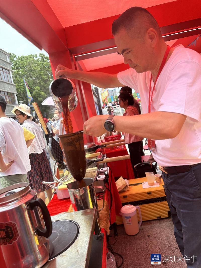 醒茶、煮茶、撞茶、焗茶,直到白色茶袋被染至咖啡色,在三月三庙会的非遗展示区,一群人围在摊位旁见证着港式奶茶师傅的精湛技艺。“要冲一杯奶茶,一个小时就可以学会,但要冲一杯好的奶茶,十年工夫也未必得。”港式奶茶第四代传人余庆池是传统奶茶品牌创始人,也是传统奶茶非物质文化遗产代表性传承人。据余庆池介绍,传统奶茶源于1913年香港老街,经过几代人的传承,传到他手中时,他将百年历史的港式丝袜奶茶秘方进行创新改良,多年的传承与发展,使余庆池传承下来的奶茶逐步成了深圳一张特殊的非遗文化名片。