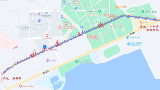 樱花大道西起潮海街(胜利桥处),东起八一街(胜利塔)处,是东北地区最长最美的樱花大道景观带。