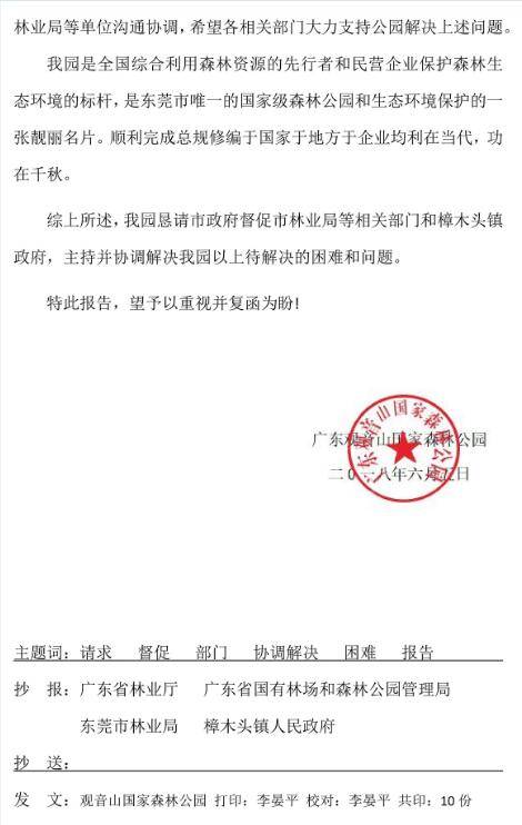 2018年3月,省林业局国有林场和森林公园办公室的领导约谈了观音山主要领导和东莞市主要领导,就修编工作和遇到的困难进行了沟通,明确要求东莞市林业局要给予支持。市林业局当时也有表态说要支持修编。但表态归表态,始终没有提供任何的帮助,甚至更多的是阻碍和推卸责任。