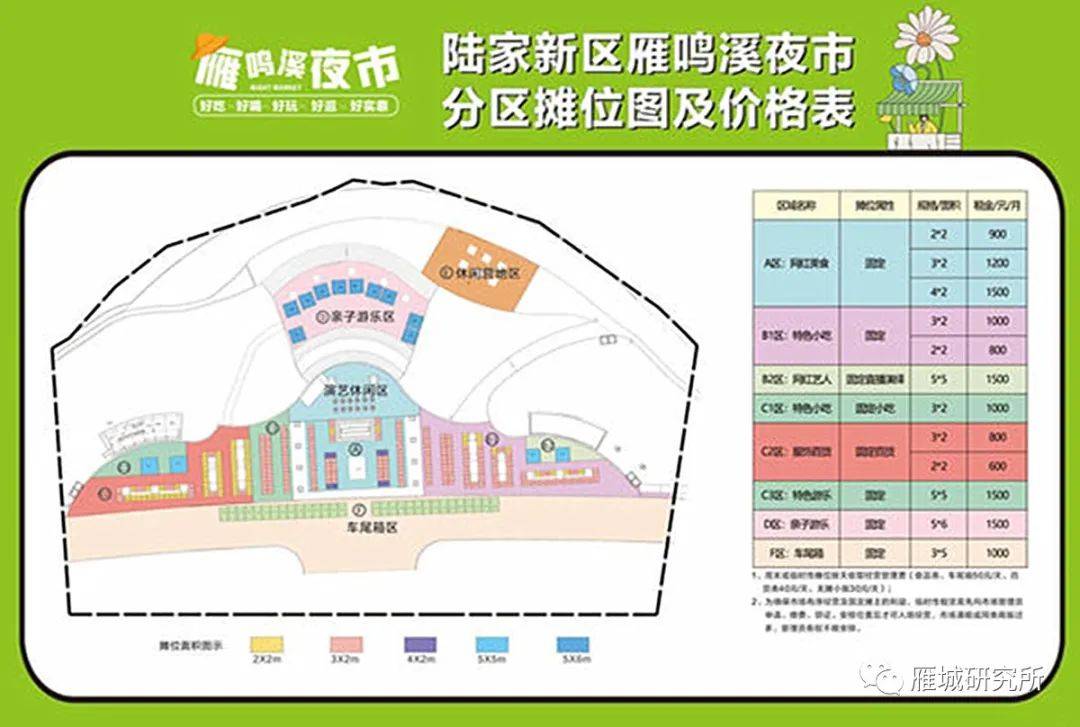 此次雁鸣溪夜市摊位共划分网红美食、特色艺人、网红艺人、服饰百货、特色游乐、亲子娱乐等多个区域,摊位租金从600-1500/月不等。