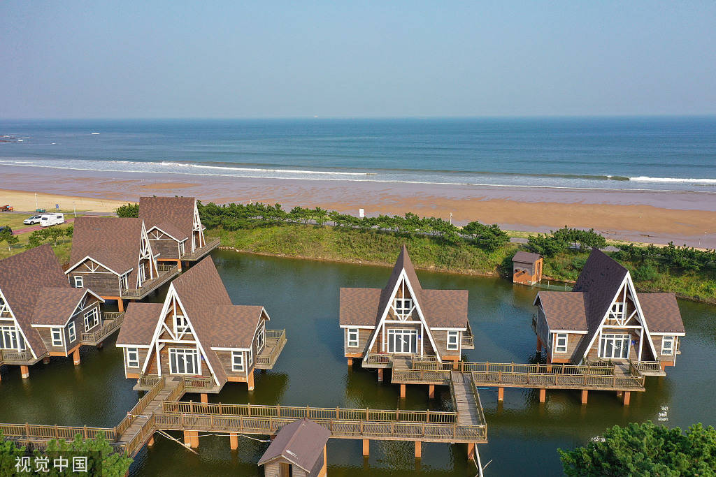 2022年9月18日,山东省日照市,航拍海边精品民宿。 视觉中国 资料图
